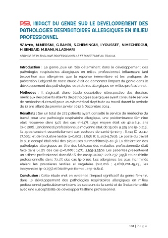 travail pour une pathologie respiratoire allergique, une prédominance féminine