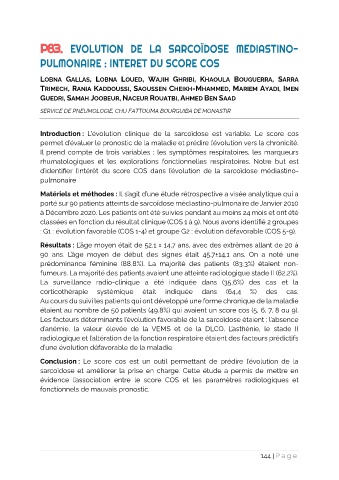 d’identifier l’intérêt du score COS dans l’évolution de la sarcoïdose médiastino-
