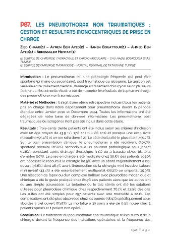 dégagées de notre base de données informatisée. Les pneumothorax post