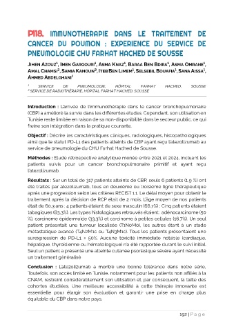 ¹ SERVICE DE PNEUMOLOGIE, HÔPITAL FARHAT HACHED, SOUSSE