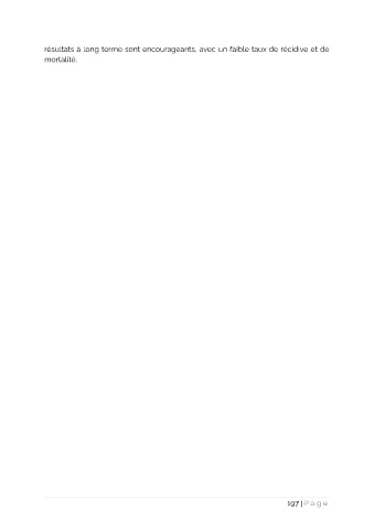résultats à long terme sont encourageants, avec un faible taux de récidive et de mortalité. 197 | Pa g e