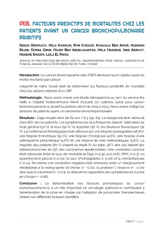 P131. FACTEURS PREDICTIFS DE MORTALITES CHEZ LES