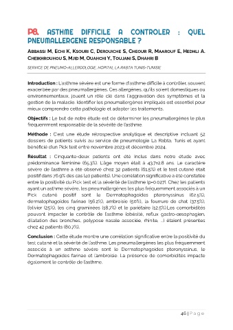 test cutané et la sévérité de l’asthme. Les pneumallergènes les plus fréquemment