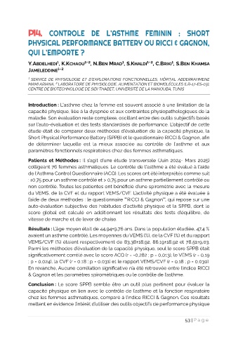 P14. CONTROLE DE L’ASTHME FEMININ : SHORT
