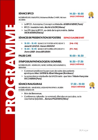 > 16 :00 – 16 :45 SEANCE DE POSTERS AFFICHES N° 3 (P46 - P70)