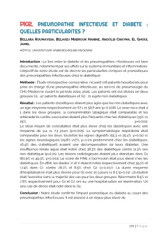P102. PNEUMOPATHIE INFECTIEUSE ET DIABETE :