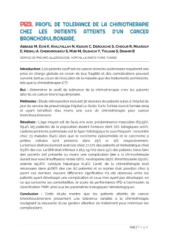 P123. PROFIL DE TOLERANCE DE LA CHIMIOTHERAPIE