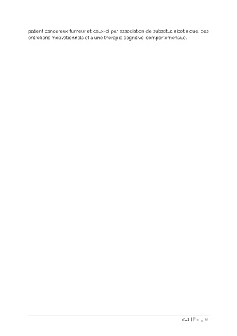 patient cancéreux fumeur et ceux-ci par association de substitut nicotinique, des entretiens motivationnels et à une thérapie cognitivo-comportementale. 201 | Pa g e