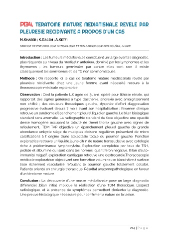 P134. TERATOME MATURE MEDIATISNALE REVELE PAR
