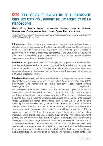 P139. ÉTIOLOGIES ET DIAGNOSTIC DE L’HEMOPTYSIE