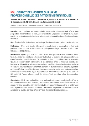 P9. L'IMPACT DE L’ASTHME SUR LA VIE