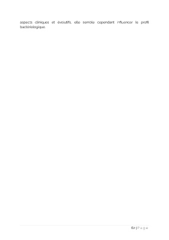 aspects cliniques et évolutifs, elle semble cependant influencer le profil bactériologique. 62 | Pa g e