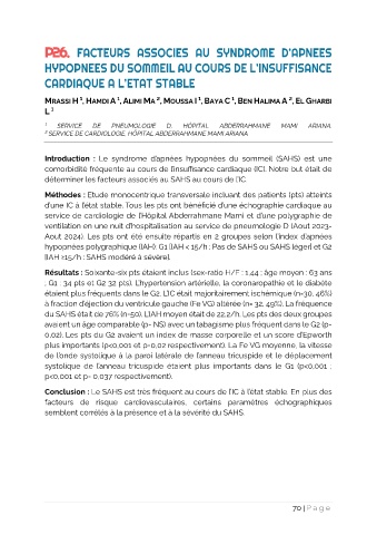 Conclusion : Le SAHS est très fréquent au cours de l’IC à l’état stable. En plus des