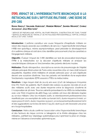 METACHOLINE SUR L'APTITUDE MILITAIRE : UNE SERIE DE