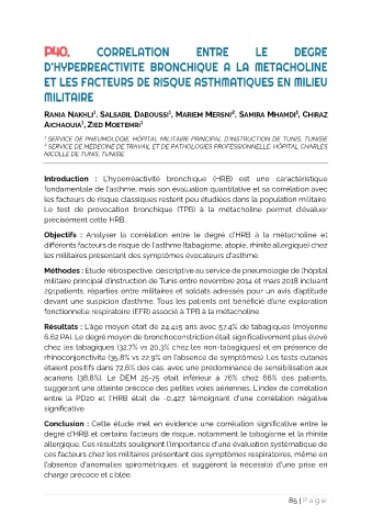 Objectifs : Analyser la corrélation entre le degré d'HRB à la métacholine et